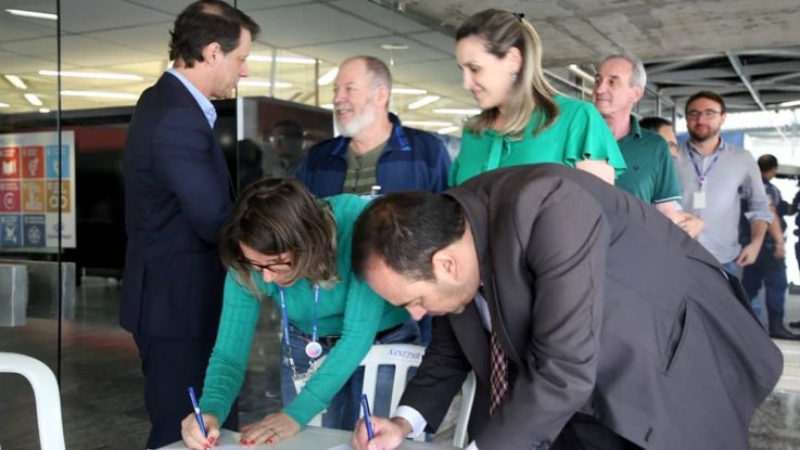 Márcio Gonçalves abriu evento falando aos presentes sobre o posicionamento da ABES, destacando mais uma vez que a modernização do marco legal do saneamento deve ter como premissa a eficiência, já que existem empresas eficiente e ineficientes tanto do setor público como no privado. Neste sentido, a lógica é unir os melhores modelos de um segmento com os melhores do outro, ressaltou. E reforçou, entre outros aspectos, que o PL, da maneira como se apresenta, não atende, em sua essência, a universalização dos serviços no país. Ao final do evento, o Presidente da ABES-SP leu o manifesto e, junto com representantes das entidades apoiadoras, assinou o documento.