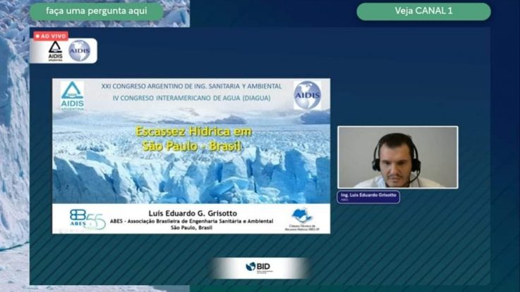 O diretor da ABES-SP e coordenador da Câmara Técnica de Recursos Hídricos da entidade, Luis Eduardo Grisotto, participou do IV Congresso Interamericano de Água e XXI Congresso Argentino de Engenharia Sanitária e Ambiental, promovido pela Associação Interamericana de Engenharia Sanitária e Ambiental (AIDIS), nesta quarta-feira, 4 de maio. O evento aconteceu de forma virtual até quinta-feira (5).
