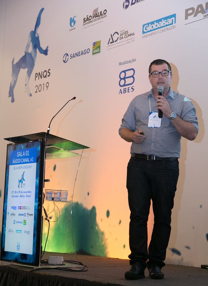 Já os cases da sala 2 apresentaram aspectos técnicos relacionados às perdas de água. Para os especialistas, a principal causa dessas perdas é a qualidade da infraestrutura. Esse foi o foco do case “Eficiência na redução de perdas reais, tendo como viés a renovação da infraestrutura de redes e ramais”, pela Sabesp MN. Para o moderador da sala 2, todas as ações visam evitar escassez hídrica. E para esta finalidade, segundo os especialistas, é necessário usar os recursos hídricos de maneira eficaz, aperfeiçoando processos,otimizando a infraestrutura existente e renovando outras. “A crise hídrica é hoje um grande desafio. Temos que promover condições operacionais para atender as diretrizes da segurança hídrica pois, essa relação entre sistema operacional e o sistema natureza, a cada dia, traz novas necessidades. Por isso, estamos aqui no PNQS 2019, buscando atender, com modernização, aprestavam de serviços”, pontuou o moderador Josivan Cardoso Moreno.