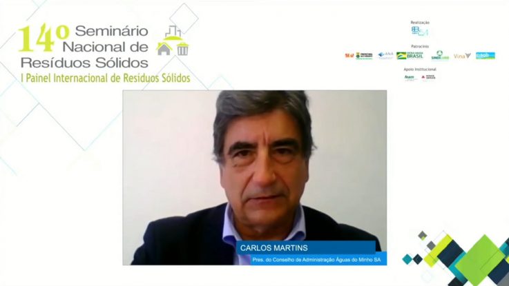 Carlos Martins, presidente do Conselho de Administração Águas do Minho SA, direto de Portugal, palestrante apresentou um panorama mundial e europeu do cenário de resíduos sólidos, contextualizando com a situação do Brasil.