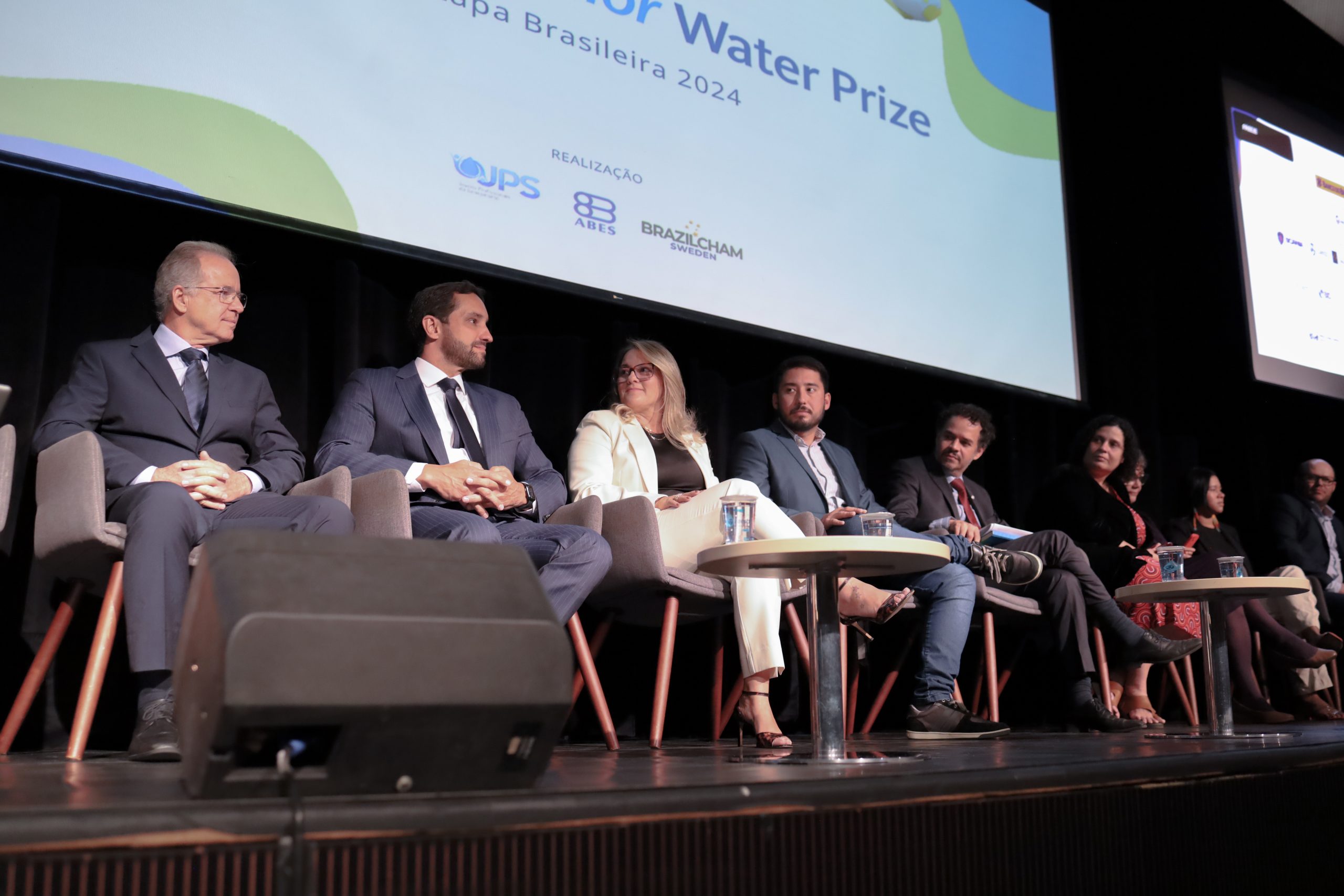 A mesa de abertura do evento foi composta pelos líderes das entidades do Prêmio. Witan Silva, coordenador nacional do Prêmio Jovem da Água de Estocolmo e do JPS, deu as boas vindas, ao lado de Elisa Sohlman, CEO da Câmara Brasileira de Comércio na Suécia (Brazilcham Sweden); e Mário Cezar Guerino, vice-presidente nacional da ABES.