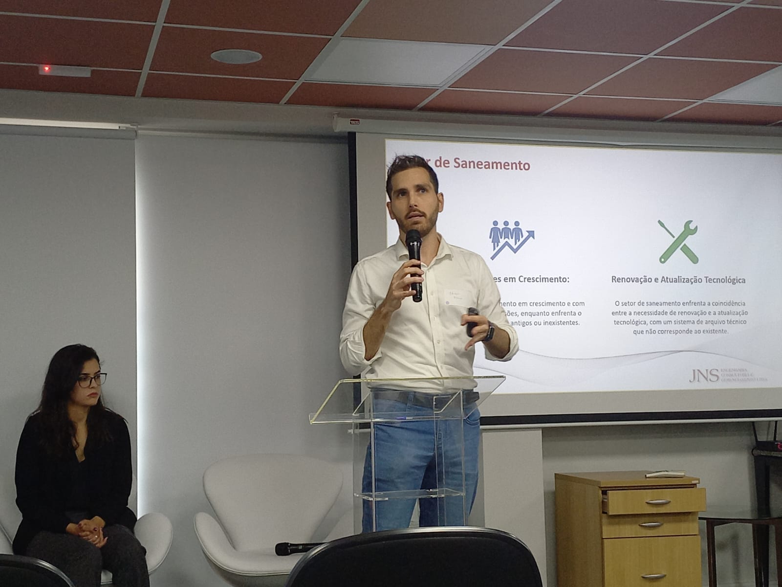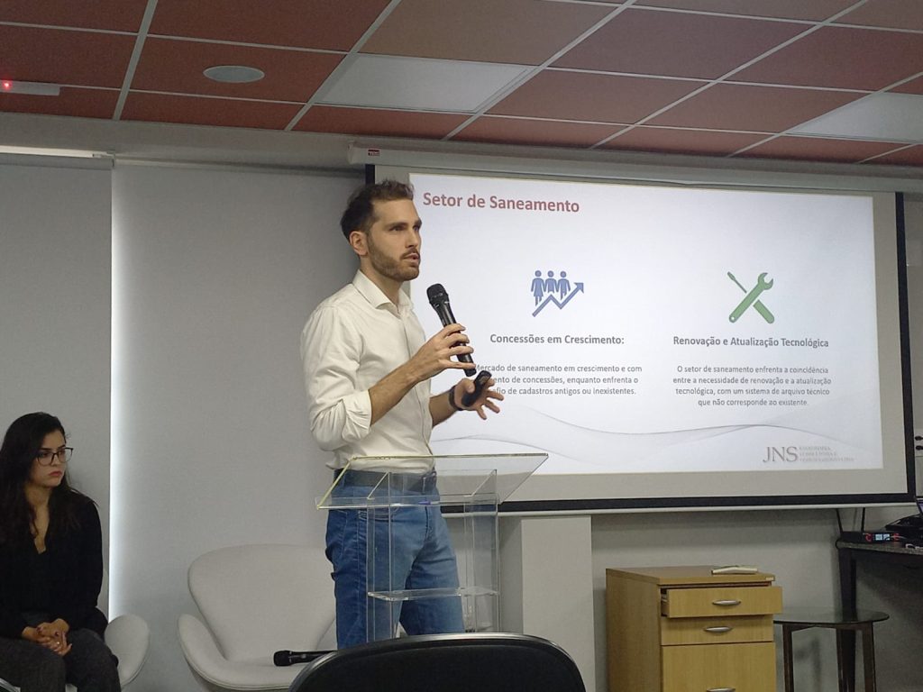 Guiados pela mediação de Verônica Colares, engenheira civil e integrante do JPS-SP, Piccini foi o primeiro a palestrar e apresentou o Building Information Modeling (BIM), traduzido do inglês para Modelagem de Informação da Construção, e sua importância no mercado de saneamento. Já Abrahão abordou a relevância da Geotecnologia no mercado. Por fim, ficou a cargo de Amanda Ramos exemplificar como a integração entre a localização espacial dos elementos pode auxiliar no processo de planejamento e gestão de projetos.