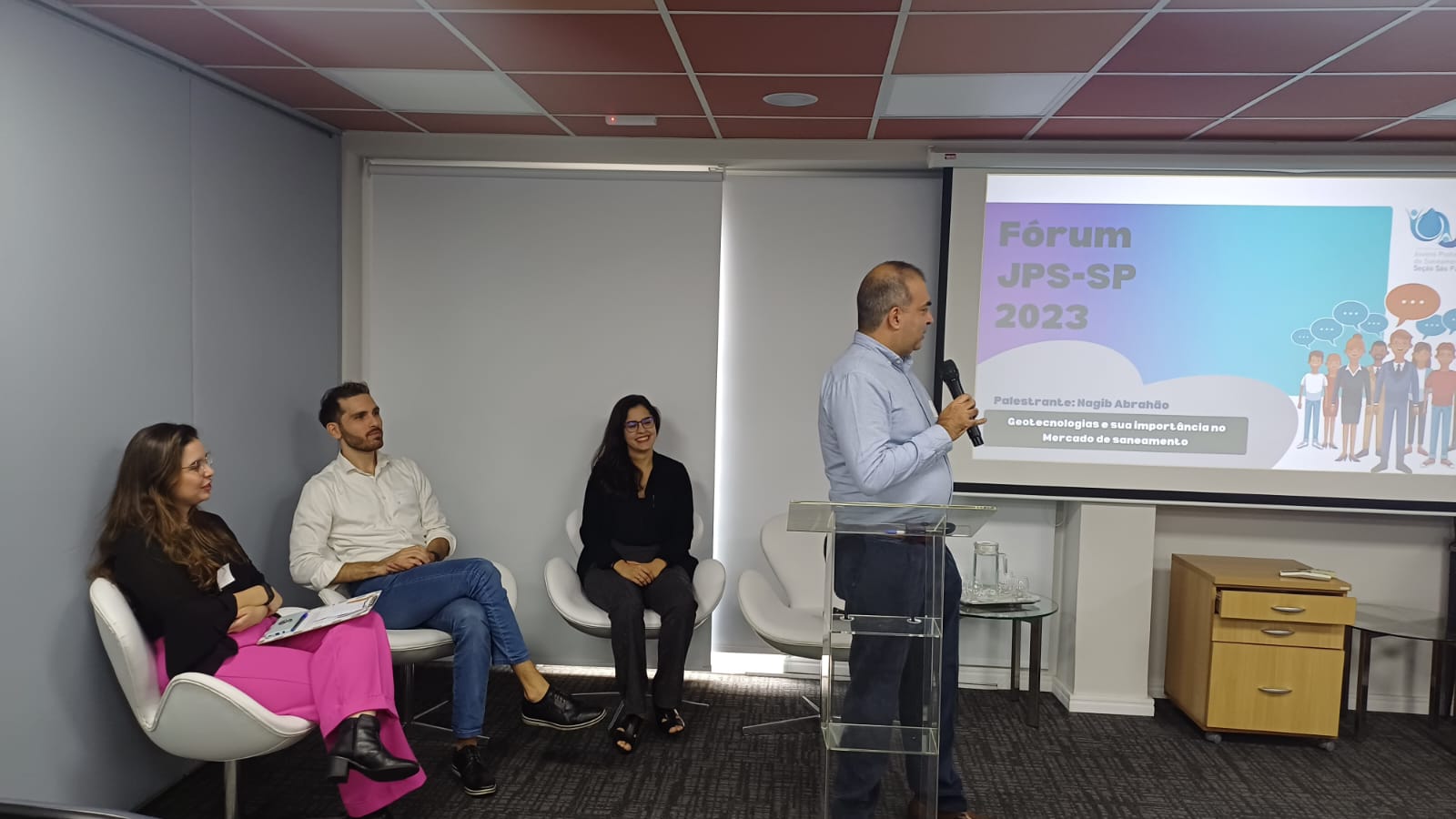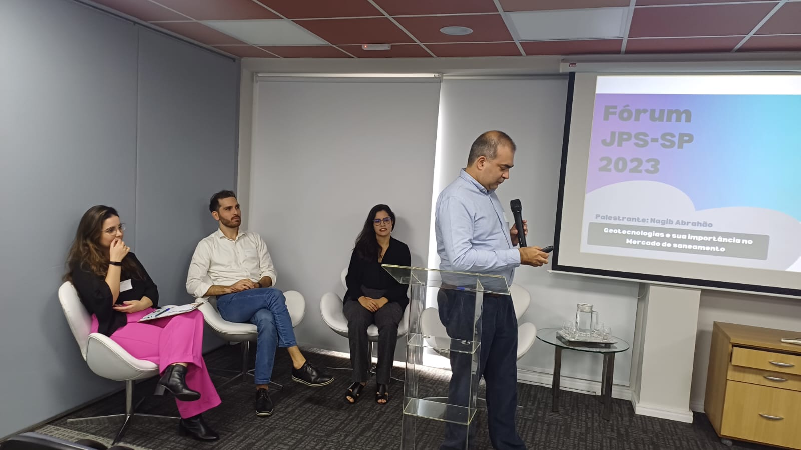 Para abordar o tema de Geotecnologias no Saneamento, o Fórum JPS 2023 convidou Bruno Piccini, engenheiro mecânico na JNS Engenharia, Amanda Ramos Vieira de Melo, tecnóloga em Hidráulica na Enorsul, e Nagib Abrahão, Manager GIS na Companhia de Saneamento Básico do Estado de São Paulo (Sabesp).