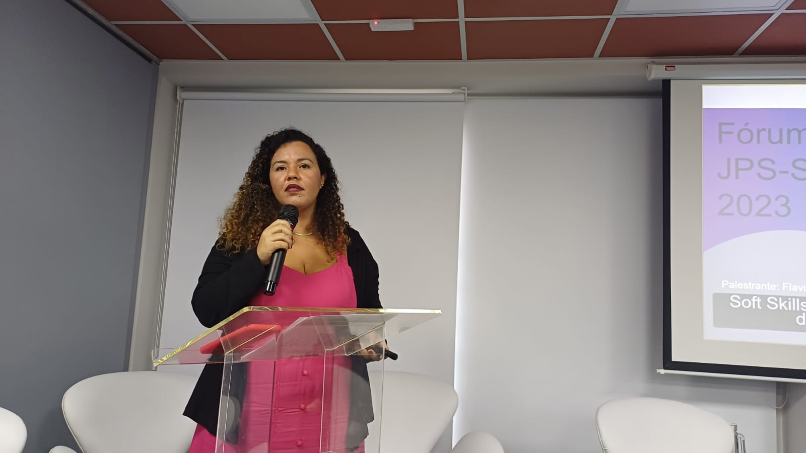 Ao encerrar os painéis, Flaviane Cunha, coordenadora institucional da ABES-SP, reservou um momento para frisar a importância das Soft Skills no mercado.