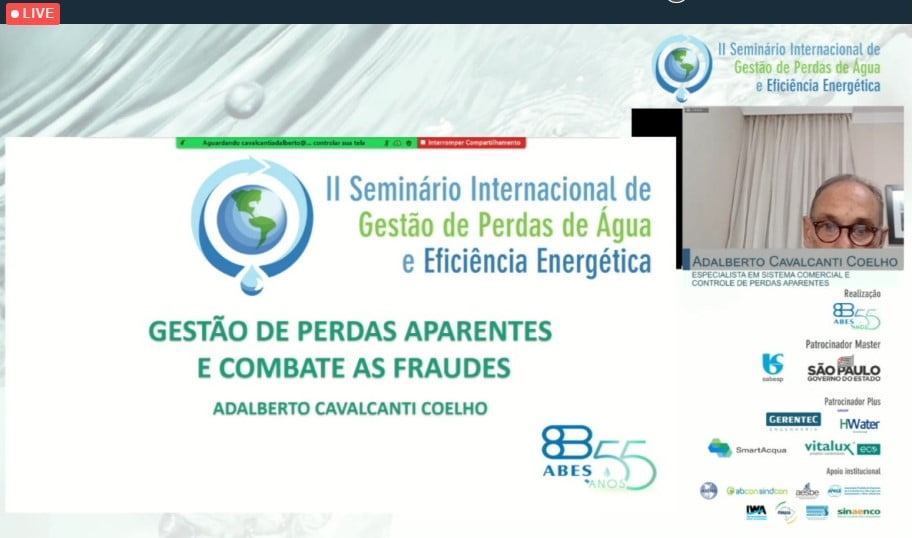 Adalberto Cavalcanti Coelho explanou sobre a gestão de perdas aparentes e combate às fraudes, explicando as causas que levam a essas perdas: consumo não autorizado; perdas por submedição dos hidrômetros; deficiência do sistema comercial; e necessidade de melhoria da eficiência da leitura.