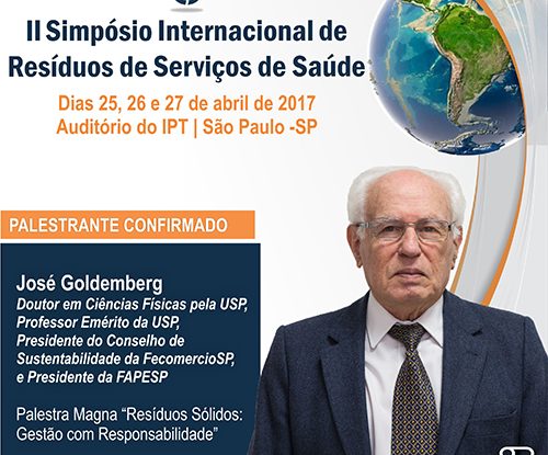 O professor José Goldemberg, um dos maiores especialistas brasileiros nos temas da sustentabilidade, doutor em Ciências Físicas pela USP e presidente do Conselho de Sustentabilidade da Fecomercio SP, ministrará a palestra magna “Resíduos Sólidos – gestão com responsabilidade”, na abertura do II Simpósio Internacional de Resíduos de Serviços de Saúde (SIRSS), que será promovido pela Associação Brasileira de Engenharia Sanitária e Ambiental – Seção São Paulo (ABES-SP), em parceria com outras entidades (veja abaixo), no Instituto de Pesquisas Tecnológicas – IPT, de 25 a 27 de abril (veja aqui a programação e faça sua inscrição aqui.
