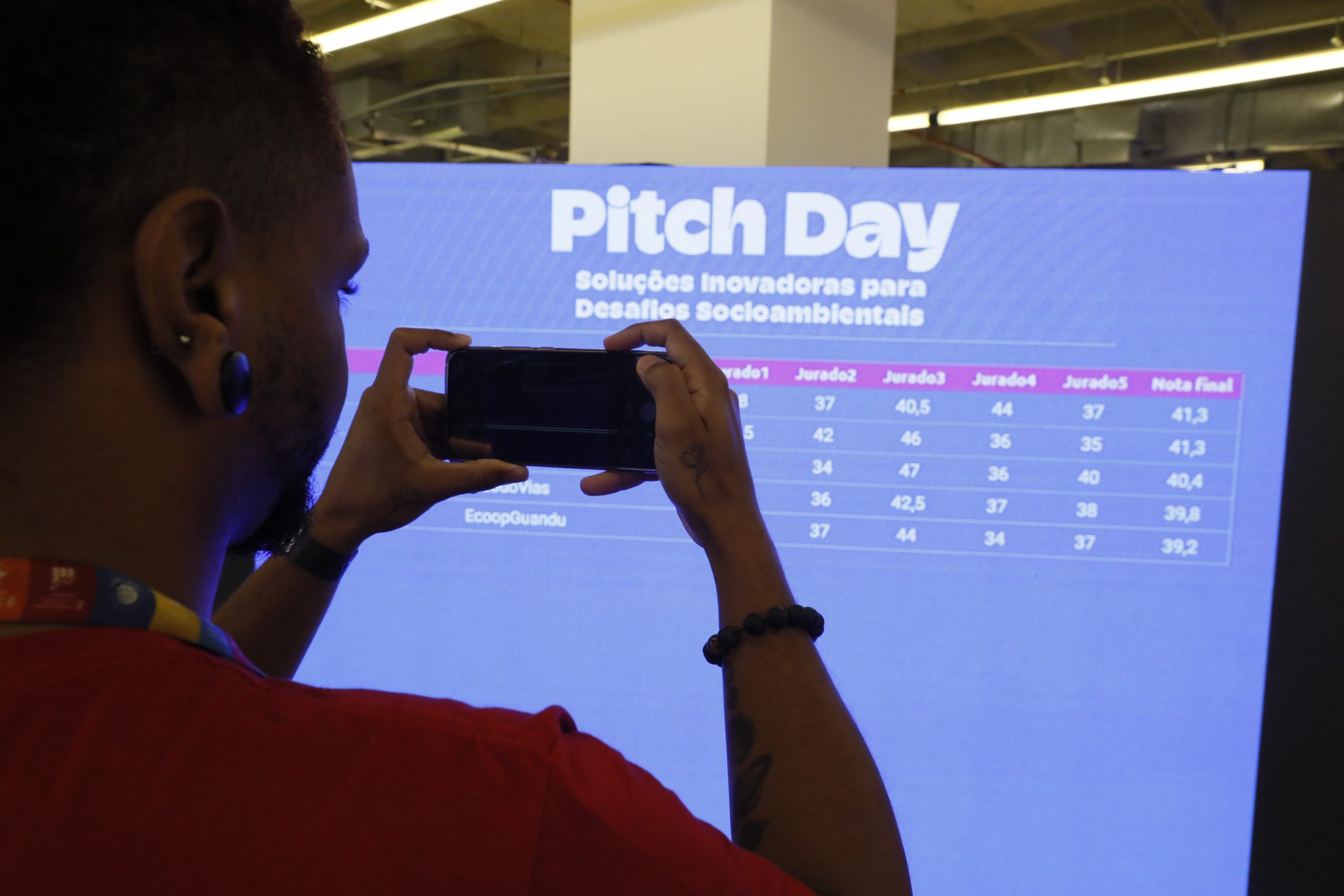 Na sequência aconteceu o Pitch Day – Soluções Inovadoras para Desafios Socioambientais (júri interno – Primeira etapa), 15 grupos de trabalho apresentaram as soluções para o júri formado por especialistas da Cedae: Allan Borges, executivo ESG; Daniel Okomura, diretor de Grandes Operações; Alan Abreu, gerente de restauração ambiental; Andrea Farias, gerente de Desenvolvimento Humano; e Ana Beatriz de Moraes, gerente de Inovação.
