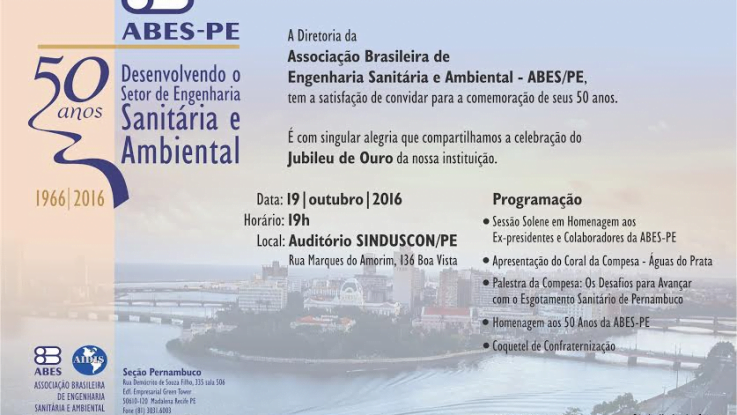 Diante do exposto, nós, que fazemos a ABES-PE, podemos dizer que comemoramos o nosso “Jubileu de Ouro” com a certeza de termos contribuído para a melhoria da qualidade de vida das pessoas. Mas, olhando o cenário ainda bastante crítico, sobretudo na região nordeste e norte, nesta data de celebração renovamos o nosso compromisso de continuidade.