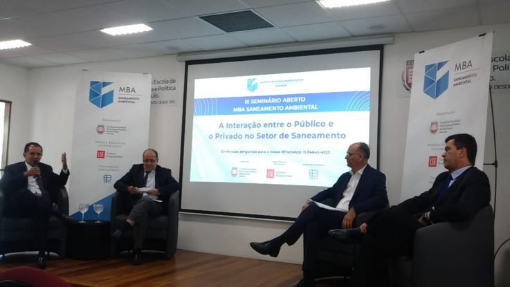 Na última sexta, 7 de fevereiro, aconteceu a terceira edição do Seminário Aberto MBA Saneamento Ambiental, realizado no auditório da Fundação Escola de Sociologia e Política de São Paulo – FESPSP para alunos do curso. Sob o tema “Interação entre público e privado”, o evento reuniu representantes de empresas públicas e privadas para discutir os caminhos do setor de saneamento no Brasil.