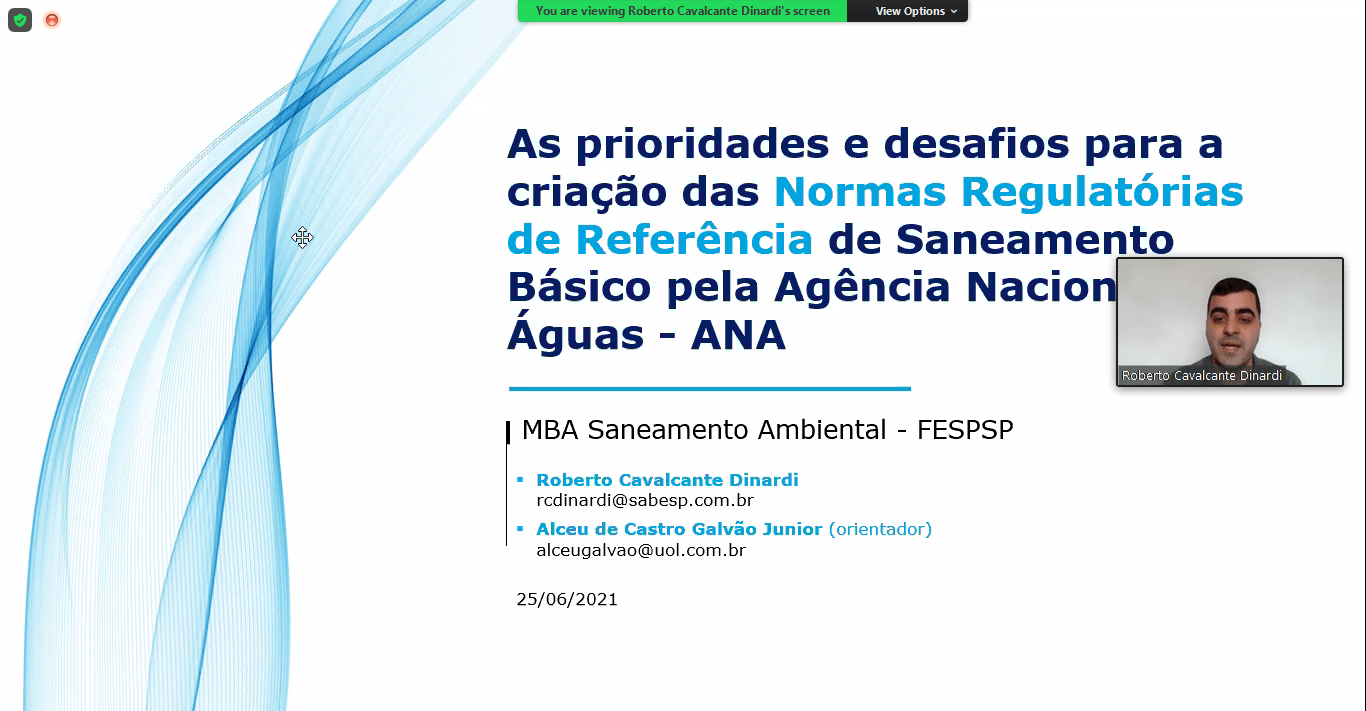Com apresentação de Rafael Castilho, coordenador administrativo do MBA, o evento contou com uma mesa virtual de abertura com a participação de gestores e profissionais do setor de saneamento, além da exibição de quatro pesquisas relacionadas às temáticas de esgotamento sanitário e regulação em um Road Show exclusivo em parceria com a Sabesp e a Universidade Empresarial Sabesp.