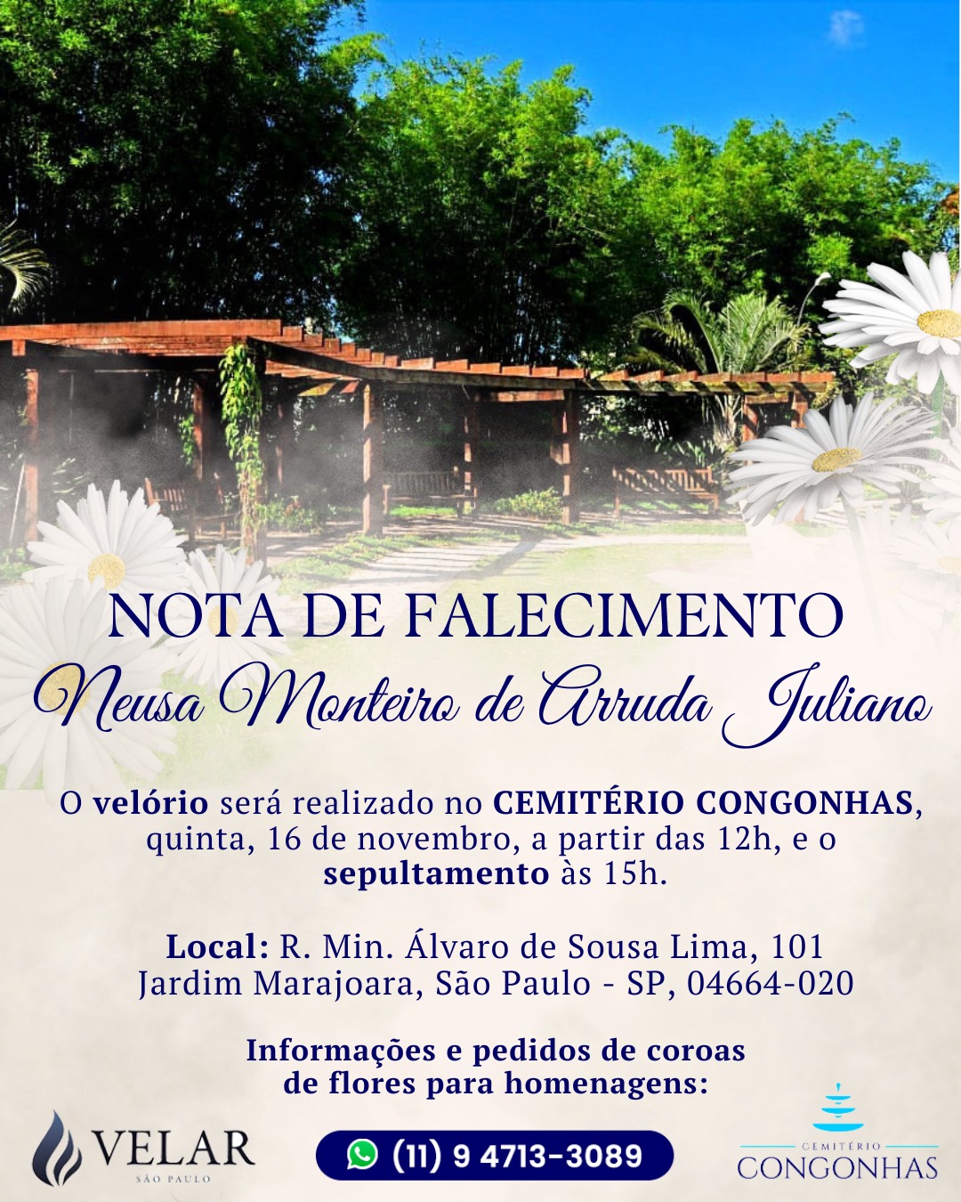 O velório comeca ao meio-dia.