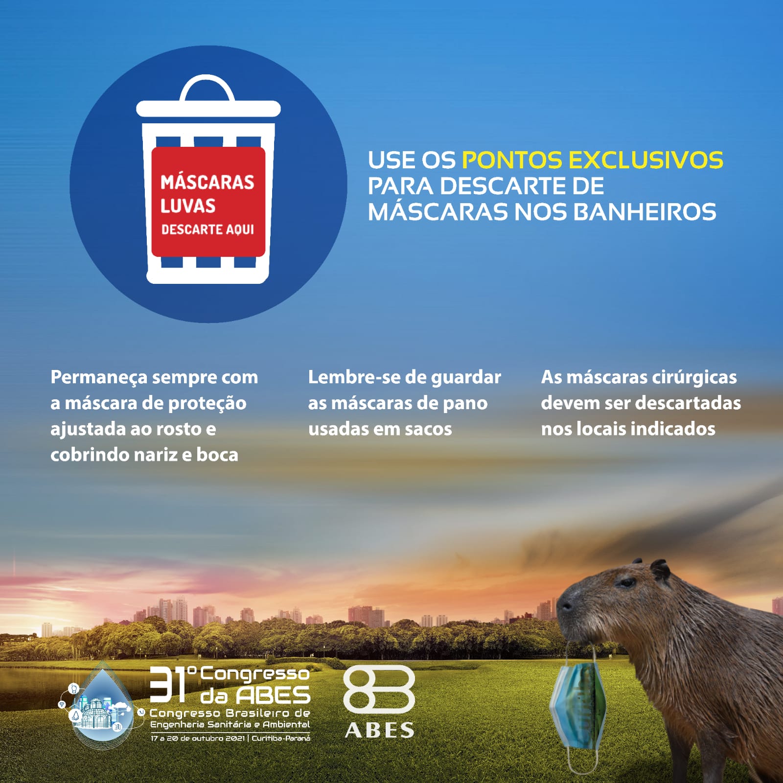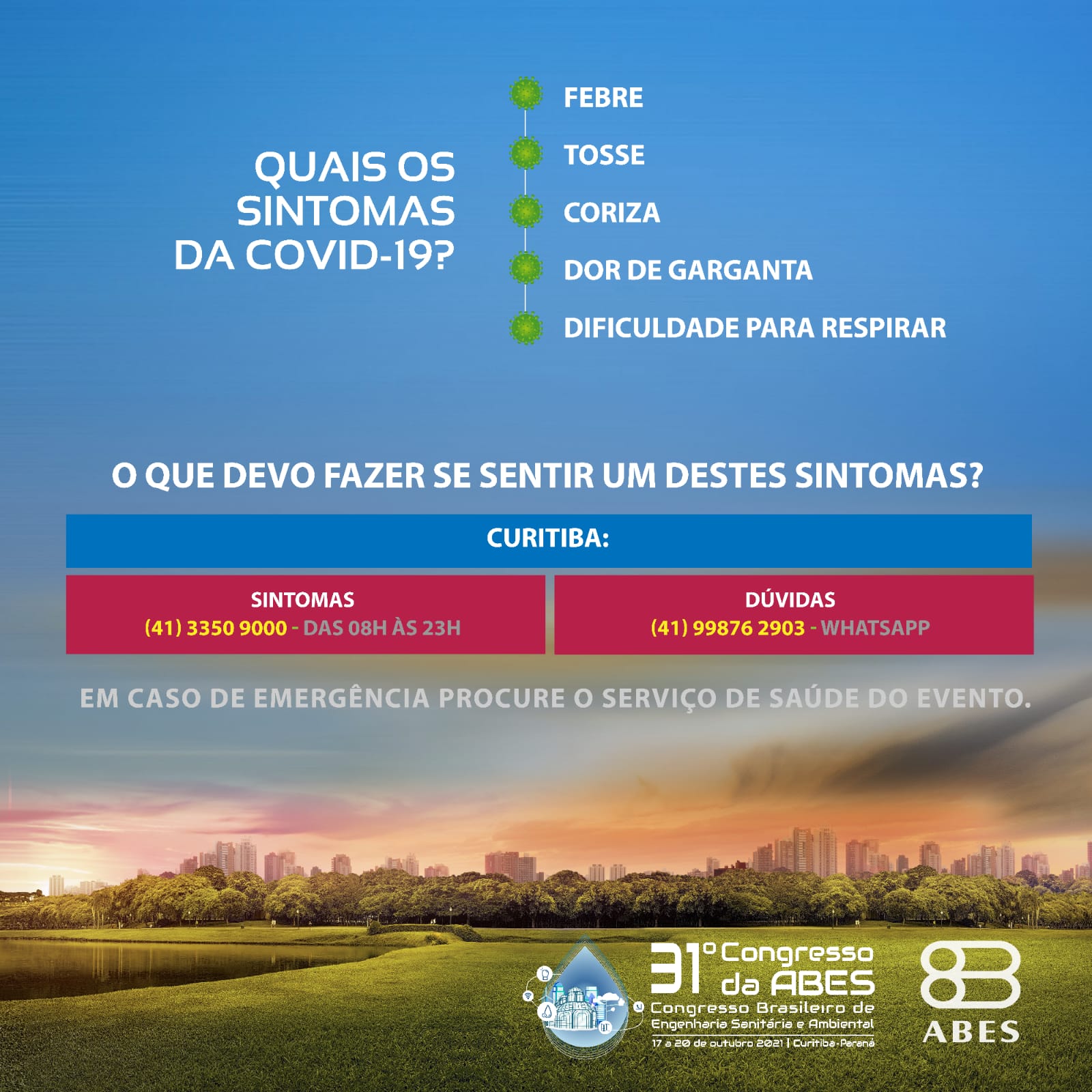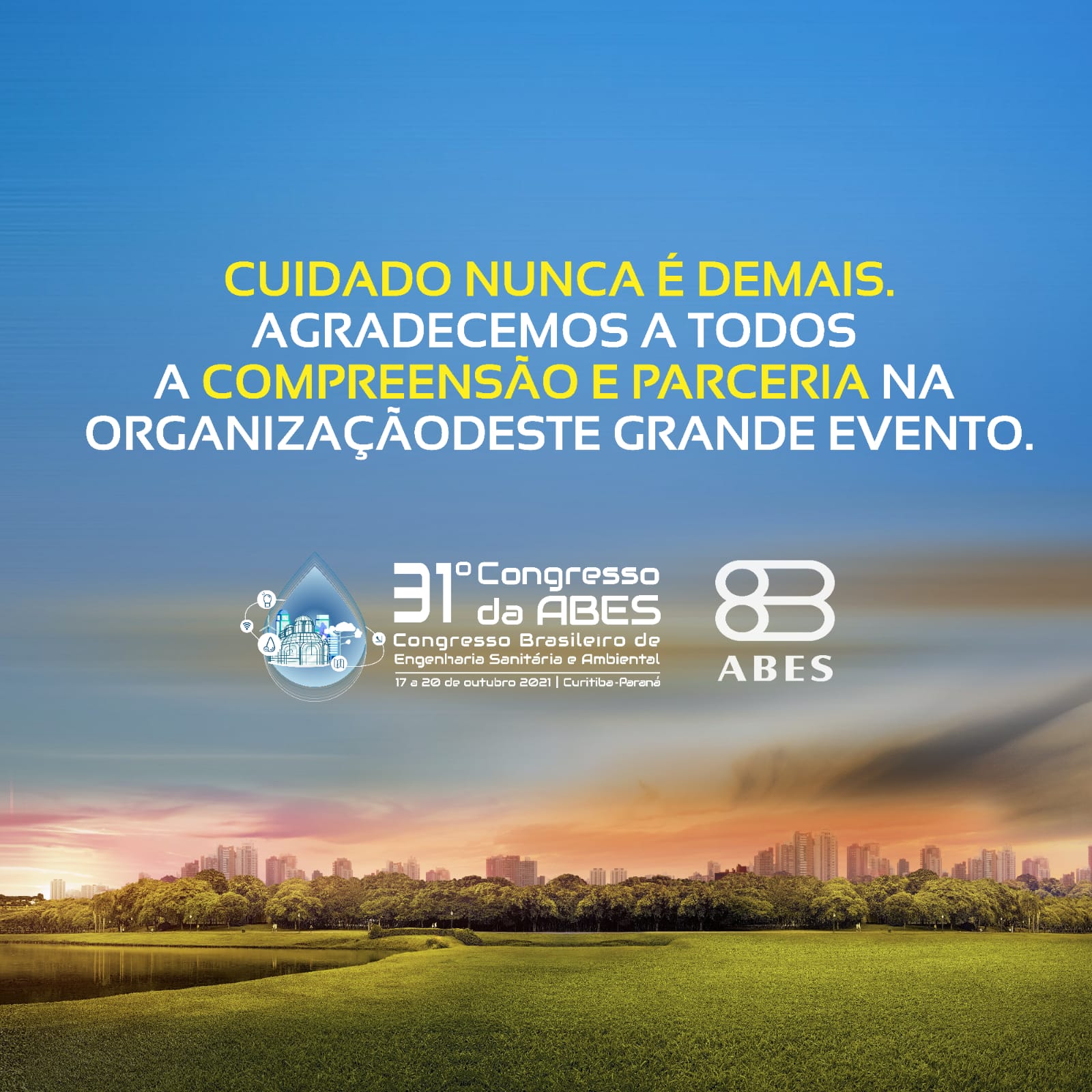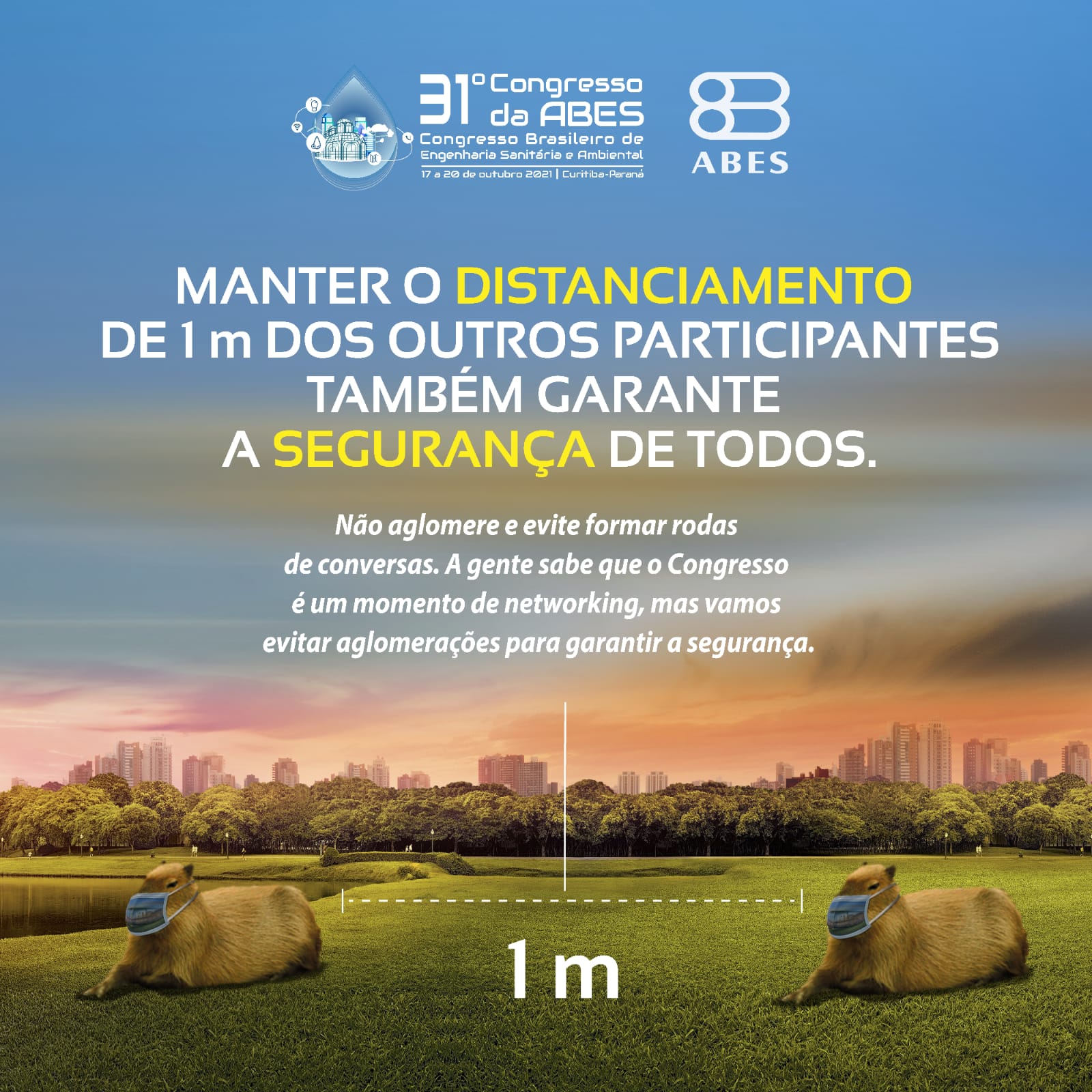 Prezando pela segurança e saúde de todos os participantes, equipe de organização e colaboradores, adotamos, em conformidade com as autoridades sanitárias de Curitiba/PR, uma série de medidas para você viver uma experiência única ao participar presencialmente do Congresso da ABES no espaço Expo Unimed. É muito importante que todos se empenhem pela própria segurança e pela segurança das outras pessoas, seguindo todas as recomendações e precauções.