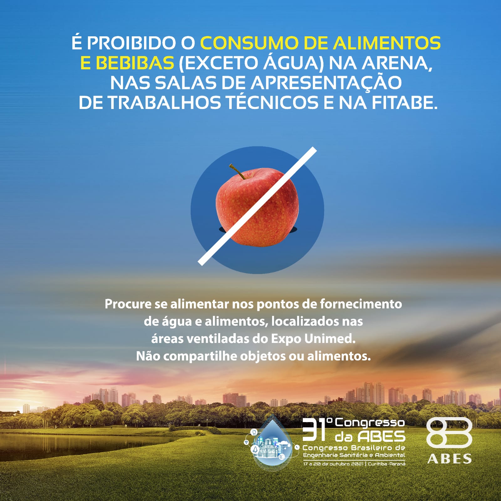 – está proibido o consumo de alimentos nas áreas de plenárias, salas de trabalhos técnicos e na Fitabes; o consumo será permitido no café e nos restaurantes do local e na área externa do Pavilhão;