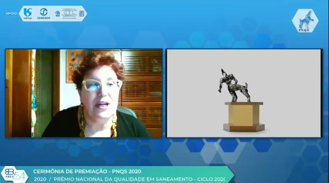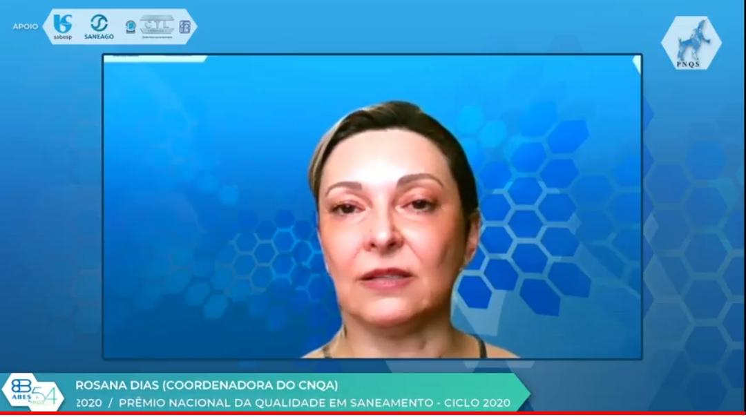 Rosana Dias, coordenadora do CNQA, abriu a cerimônia de premiação, que foi aberta ao público e transmitida online pelo cana da ABES no YouTube. Em seu discurso, Rosana contou como foi realizar o evento deste ano totalmente atípico devido à pandemia. Ela aproveitou para agradecer a todas as pessoas envolvidas no processo.