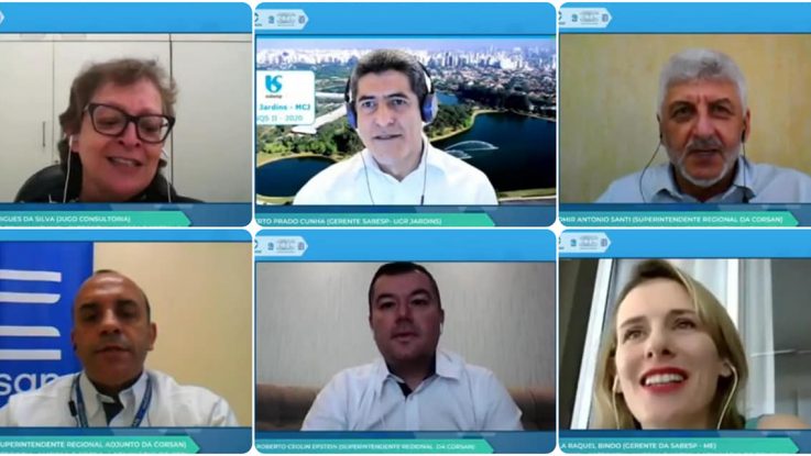 Integraram a discussão Alberto Prado Cunha, gerente da UGR Jardins da Sabesp; José Roberto Ceolin Epstein, superintendente regional da Regional Central – Surcen, da Corsan; Aldomir Antonio Santi, superintendente da Região do Planalto – Surpla, da Corsan; Luciano Brandão, superintendente adjunto Regional da Sinos – Sursin, da Corsan; e Sheila Raquel Bindo, gerente da Superintendência de Gestão de Empreendimentos da Metropolitana da Sabesp.