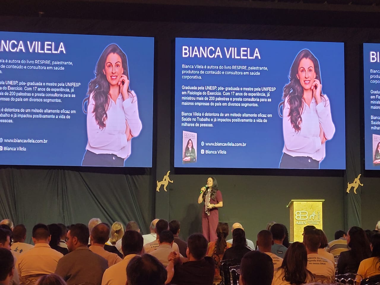 Dando início às atividades do primeiro dia, a expert em saúde no trabalho, Bianca Vilella, comandou a Palestra Magna “Sustentabilidade Emocional Corporativa”. Durante a apresentação, ela abordou as vantagens para as pessoas e também para as empresas na adoção de bons hábitos. Segundo Bianca, que é autora do livro “Respire”, colaboradores mais saudáveis e felizes podem trazer ótimos resultados para o mundo corporativo, em uma relação harmoniosa.