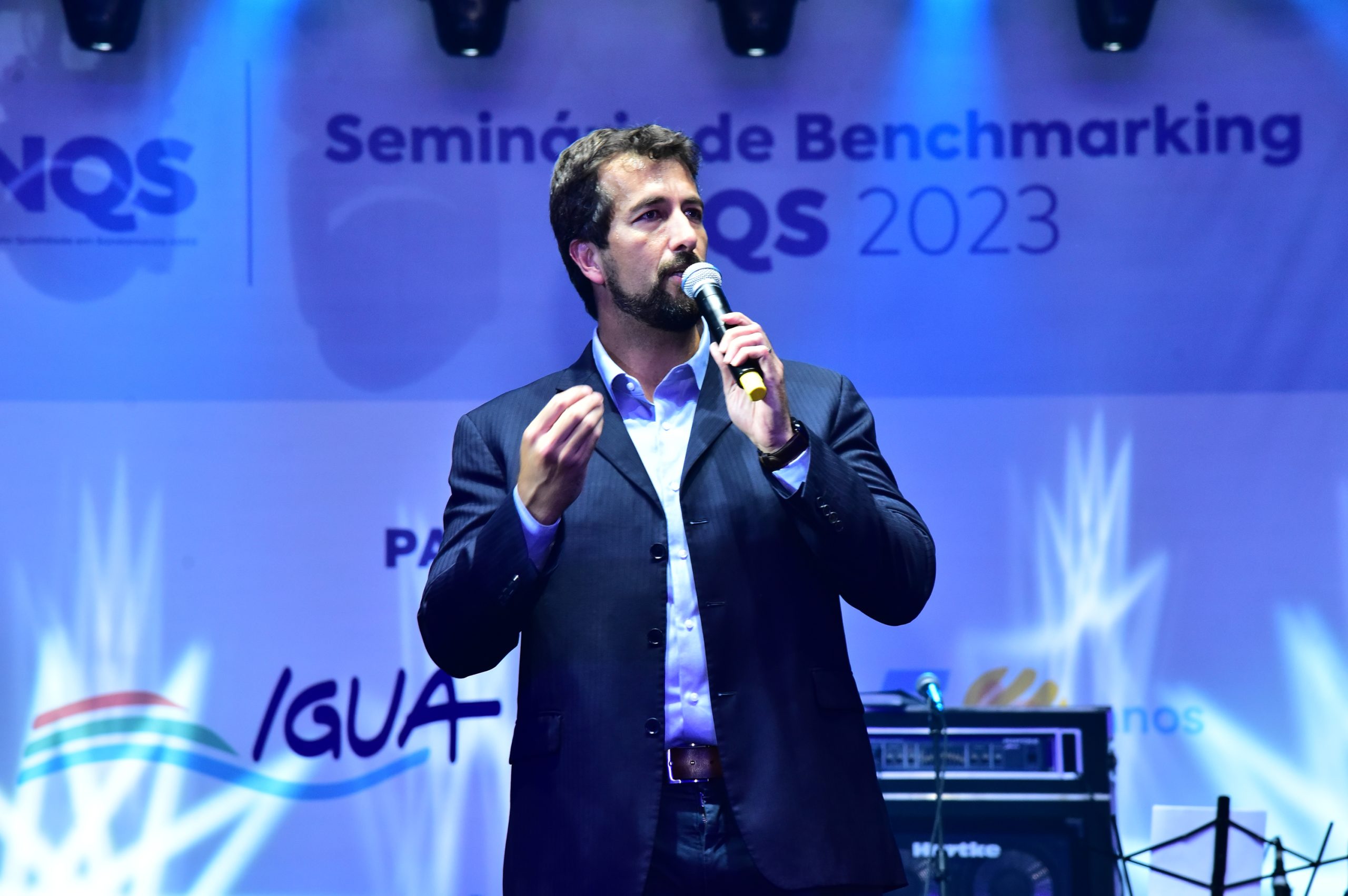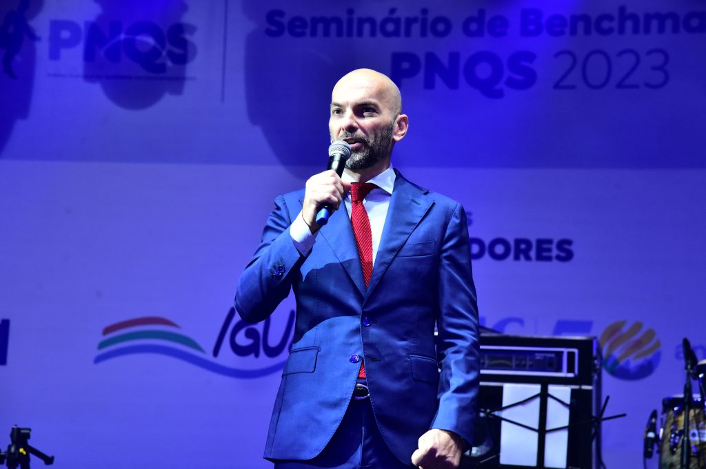 Marcel Sanches, secretário geral da ABES, na oportunidade representando o presidente Alceu Guérios Bittencourt, estendeu seus cumprimentos e agradecimentos a todas as autoridades, organizações, colaboradores e patrocinadores do PNQS Ciclo 2023. “Este é um momento importante onde reunimos profissionais, especialistas e entusiastas do setor para celebrar as conquistas e avanços significativos alcançados na gestão do saneamento básico do nosso país”, destacou. Ainda em seu discurso, Marcel relembrou o direito humano fundamental ao saneamento básico e salientou a importância de reconhecer e valorizar as pessoas e organizações que não medem esforços para evoluir e garantir um serviço eficiente de qualidade em todo o território nacional.