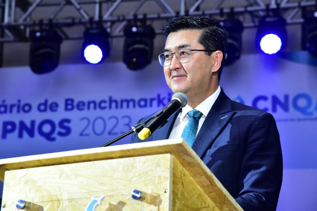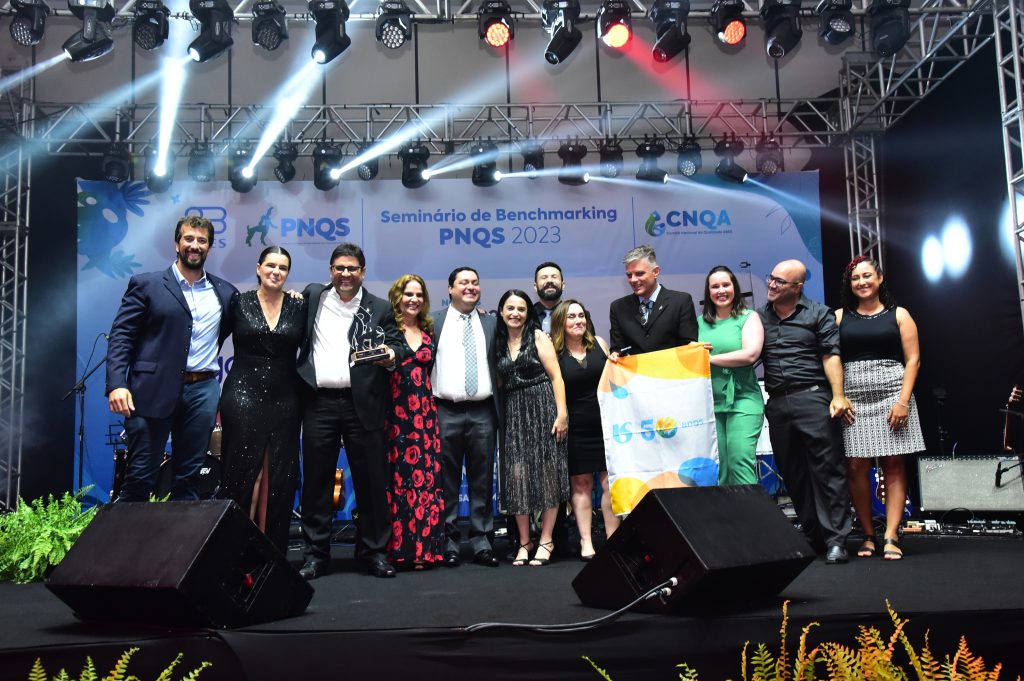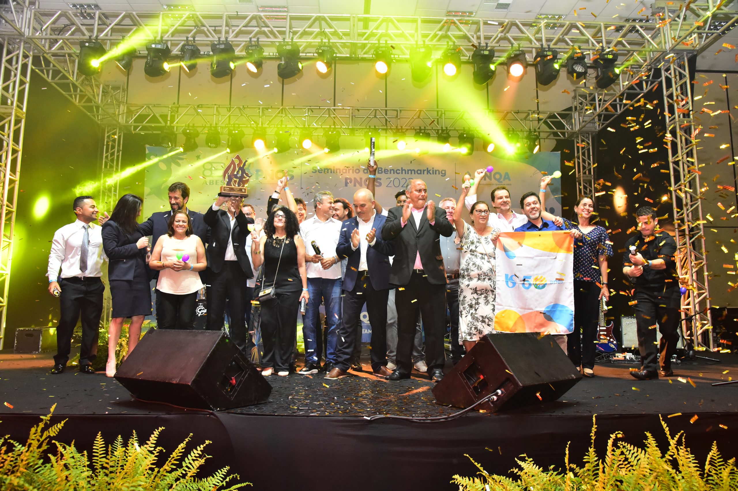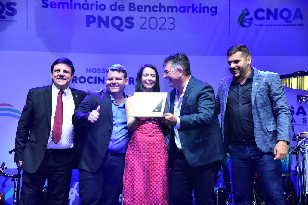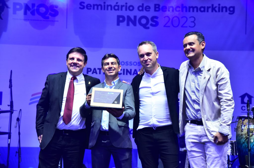 O PNQS 2023 também homenageou Oswaldo Serrano pela parceria e comprometimento com o PNQS nos últimos 25 anos. O Troféu foi entregue por Josivan Cardoso, secretário geral do CNQA.