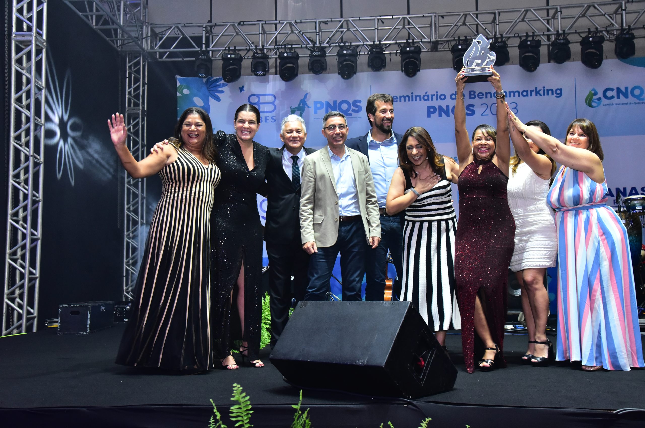 Nercy Donini Bonato foi homenageada com a medalha Quíron pela participação decisiva na implementação e no aperfeiçoamento do PNQS. O troféu foi entregue pela coordenadora do CNQA, Samanta Souza.