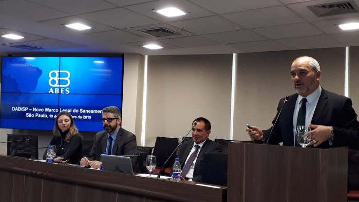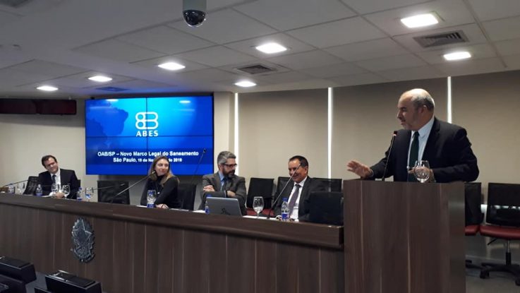 Nesta terça, 19 de novembro, Roberval Tavares de Souza, Presidente nacional da ABES, participou de mais um debate sobre o novo marco legal do saneamento básico. Desta vez, o evento foi promovido pela Comissão Especial de Infraestrutura da Ordem dos Advogados do Brasil – OAB São Paulo, em sua sede na capital paulista. Na ocasião, Roberval integrou o Painel “Busca de recursos públicos e privados para investimentos na área do saneamento básico”, que contou também com palestras de Rodrigo Pagani (FDUSP); Guilherme Amorim Campos da Silva (Rubens Naves Santos Jr. Advogados) e Rogério de Paula Tavares (AEGEA/ABDIB).