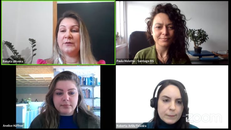 As convidadas foram Anelise Nadi Hüffner, engenheira ambiental e assessora do Ministério Público Estadual do Rio Grande do Sul; Roberta Arlêu Teixeira, coordenadora do Programa Jovens Profissionais do Saneamento (JPS/ABES-RS); e Paula Moletta, consultora em Sustentabilidade e Lixo Zero, sócia do Green Thinking Project.