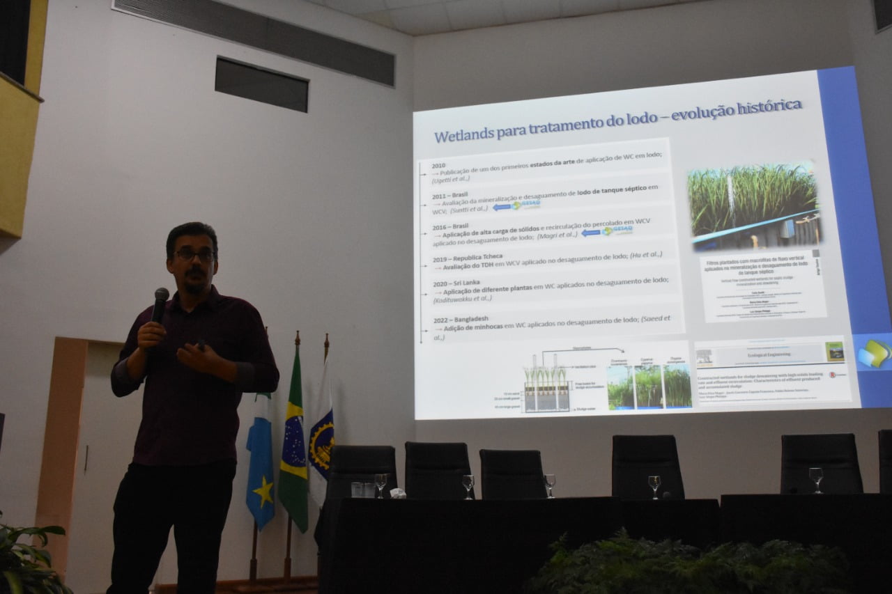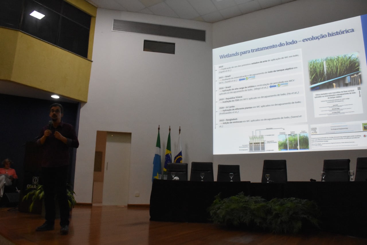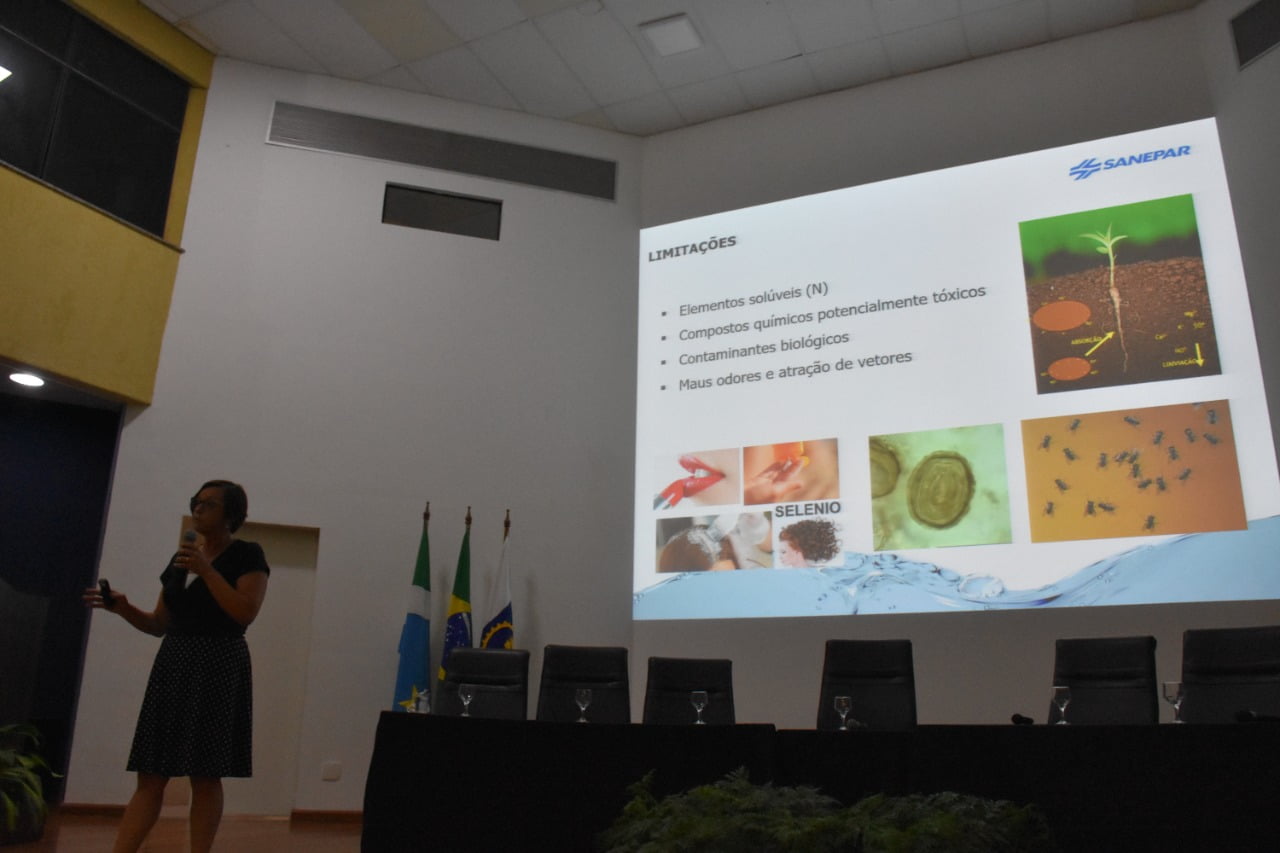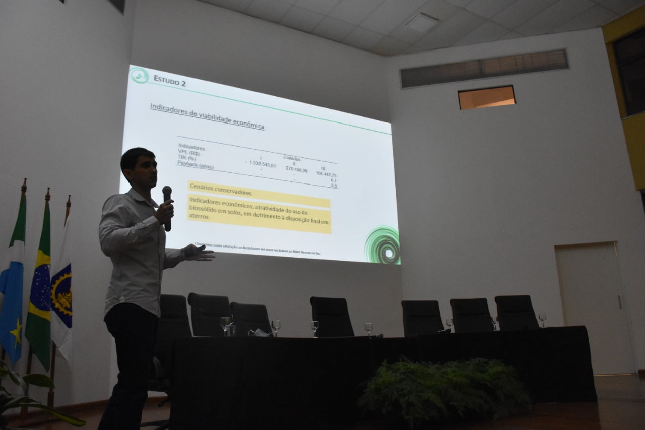 O seminário, inédito no Estado, foi dividido em dois blocos e abordou a utilização de biossólidos resultantes do tratamento de esgoto em solos cultiváveis, áreas degradadas e áreas de reflorestamento, por meio de palestras proferidas por representantes da Companhia de Saneamento do Paraná (Sanepar), Empresa Brasileira de Pesquisa Agropecuária (Embrapa), Federação da Agricultura e Pecuário de Mato Grosso do Sul (Famasul), Universidade Federal de Santa Catarina (UFSC)/WetLands e do Instituto Nacional de Ciência em Tecnologia (INCT) Estação de Tratamento de Esgotos (ETEs) Sustentáveis.