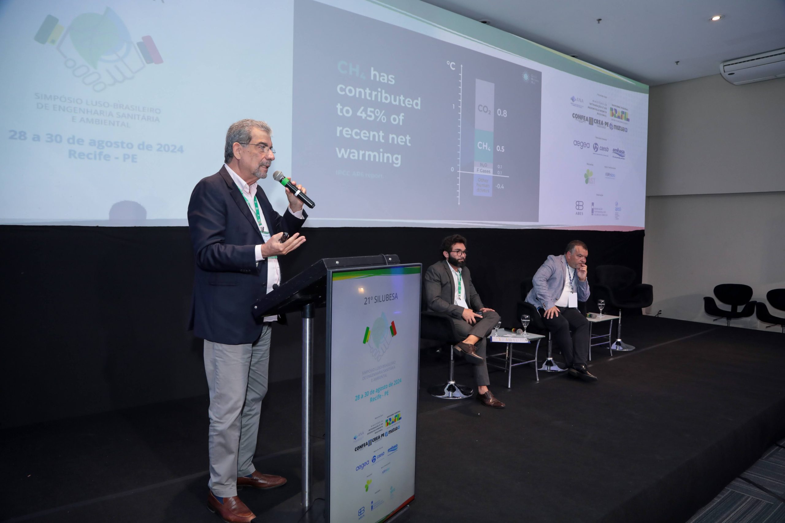 O painel 9 deste 21º Simpósio Luso-Brasileiro de Engenharia Sanitária e Ambiental, o Silubesa 2024, abordou os desafios do contexto das emissões de carbono no setor dos resíduos e saneamento, com moderação de Josivan Cardoso, secretário-geral da Associação Brasileira de Engenharia Sanitária e Ambiental (ABES) e gerente do Conselho Regional de Engenharia e Agronomia do Estado do Rio de Janeiro (Crea-RJ).