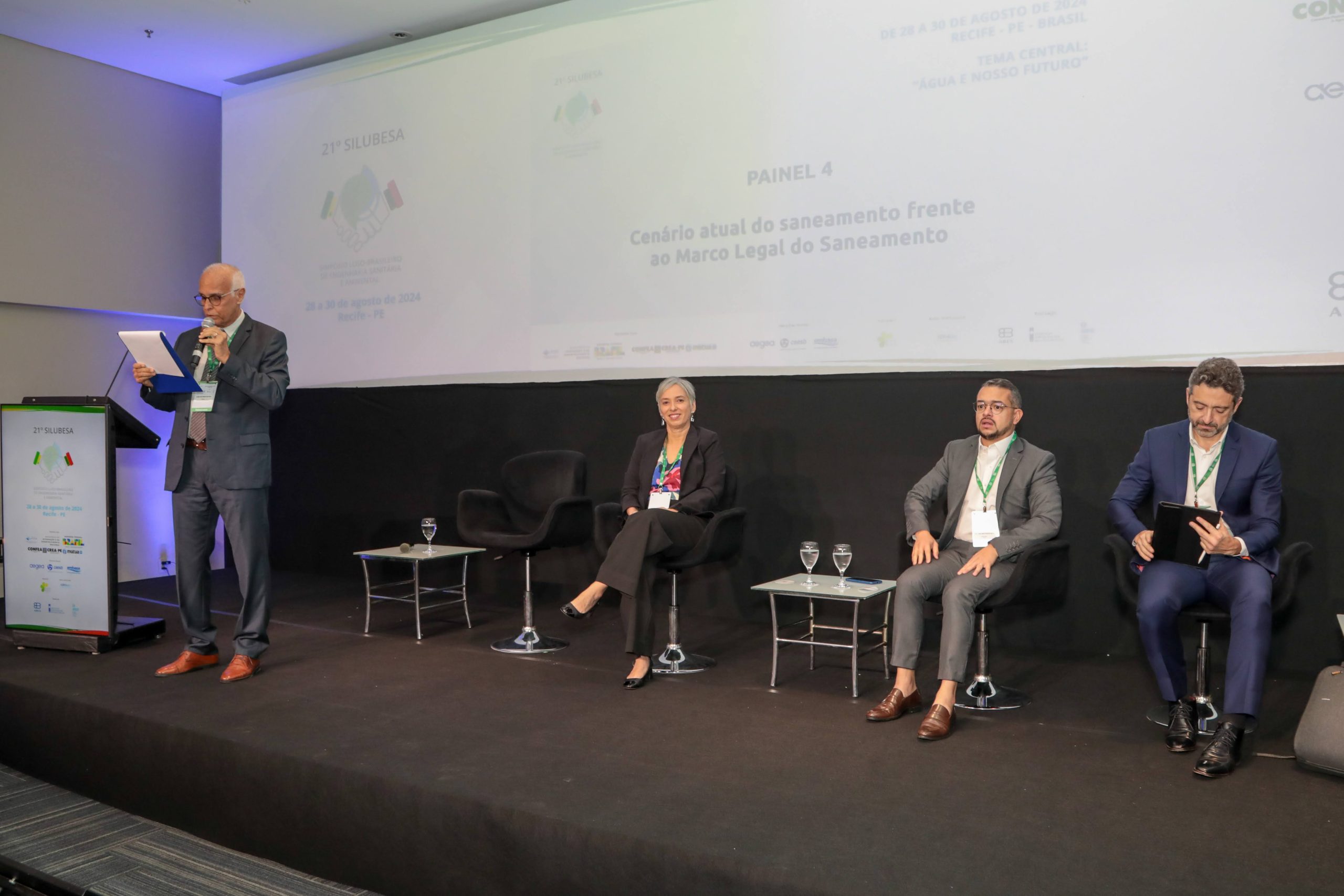 O segundo dia de trabalhos do 21º Simpósio Luso-Brasileiro de Engenharia Sanitária e Ambiental (Silubesa), que começou nesta quarta-feira, 28 de agosto, na cidade de Recife, Pernambuco, e vai até esta sexta (30), foi aberto com a apresentação do Painel 4 sobre o cenário atual do saneamento frente ao marco legal do Setor. O Silubesa 2024 é uma realização conjunta entre a Associação Brasileira de Engenharia Sanitária e Ambiental (ABES), a Associação Portuguesa dos Recursos Hídricos (APRH) e a Associação Portuguesa de Engenharia Sanitária e Ambiental (APESB). O evento, que também acontece em plataforma digital exclusiva, reúne especialistas do Brasil e Portugal para discutir os desafios e as soluções para a gestão da água em um contexto de alterações climáticas.
