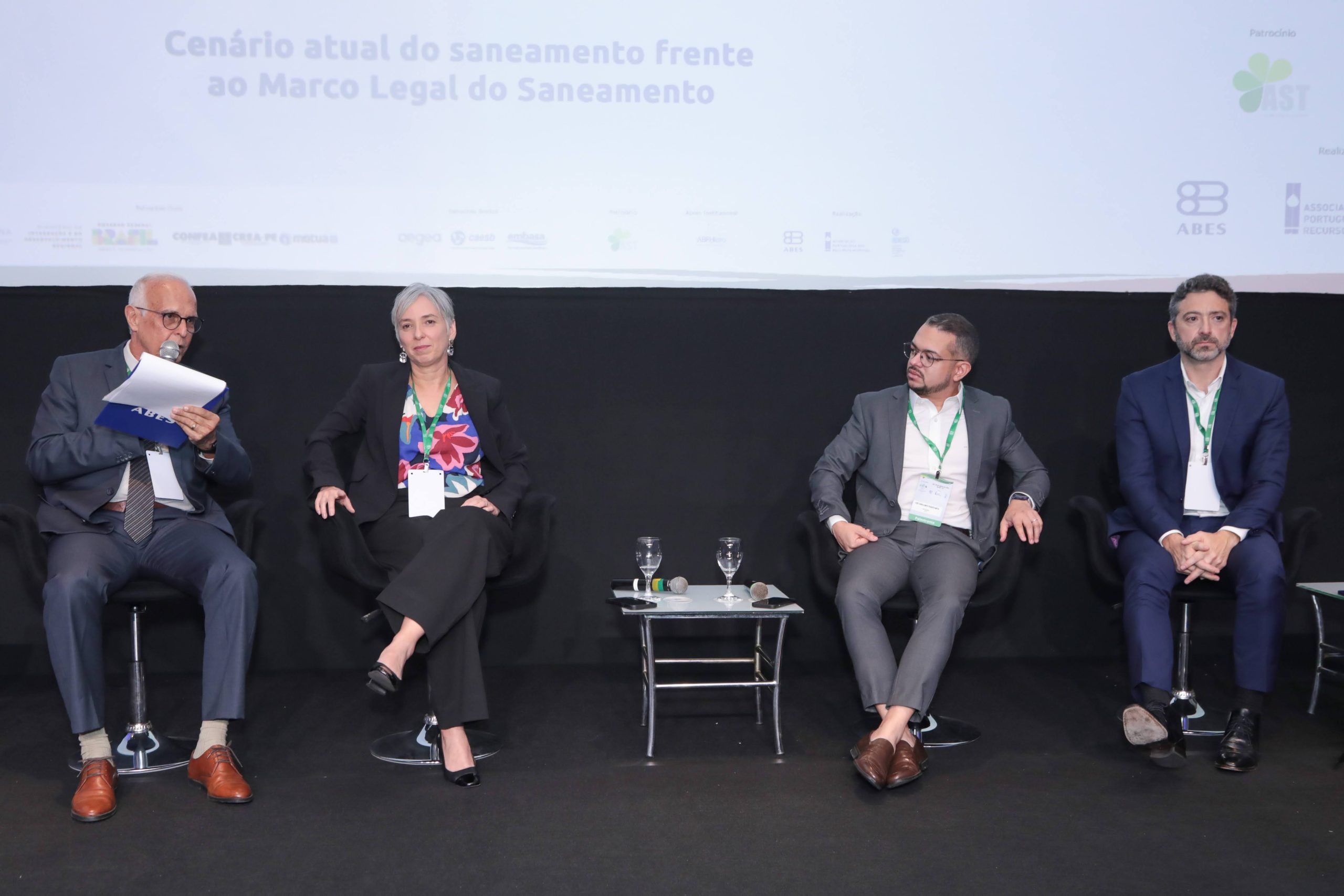 Realizado no formato de talk show, o primeiro painel do segundo dia do Silubesa, contou com participação de Álvaro José Menezes, secretário-geral adjunto da ABES, como moderador; Luciana Capanema, do Departamento de Estruturação de Projetos de Saneamento no Banco Nacional de Desenvolvimento Econômico e Social (BNDES); Luiz Cavalcante Peixoto Neto, presidente da Companhia de Saneamento de Alagoas (Casal); e André Macedo Facó, diretor-presidente da Ambiental Ceará, que contribuíram com suas expertises como palestrantes. Menezes iniciou a discussão explicando sua dinâmica com a distribuição de perguntas junto aos especialistas.