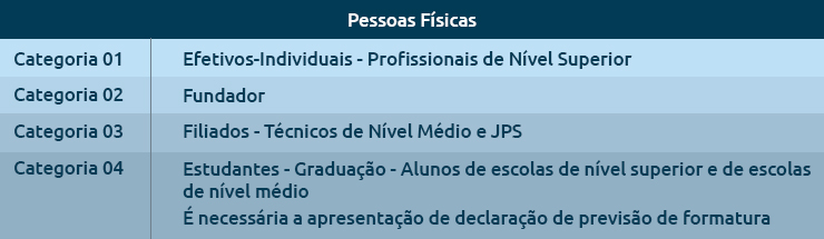 | Categoria 02 – Fundador | R$ 520,00 | R$ 442,00 | R$ 468,00 |