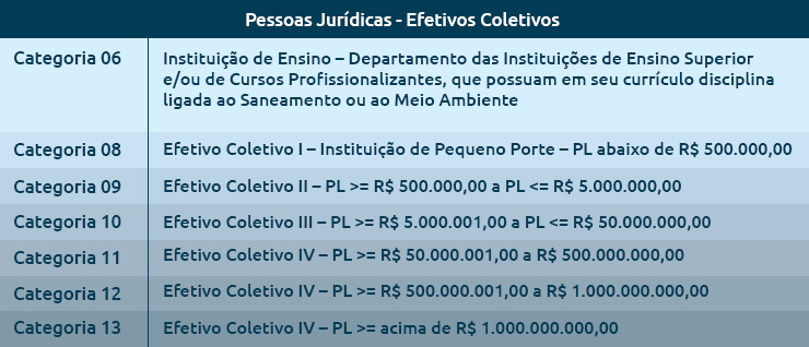 | Categoria 08 – Instituição de Pequeno Porte | R$ 1.270,00 | R$ 1.079,50 | R$ 1.143,00 |