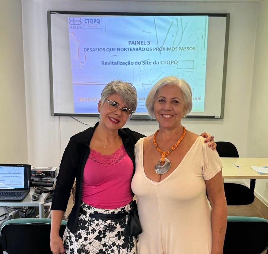 Coordenadoras da Câmara Temática de Qualidade de Produtos Químicos da ABES: Maria Cristina Coimbra Marodin e Vasti Ribeiro Facincani (adjunta).
